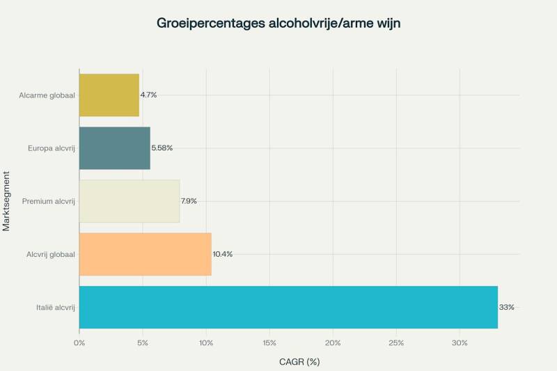 Onderzoek van marktanalysebureaus toont aan dat de wereldwijde markt voor alcoholvrije wijnen naar verwachting zal groeien van €2 miljard in 2025 naar €5,2 miljard in 2035, wat neerkomt op een samengestelde jaarlijkse groei van 10% . Deze exponentiële groei roept fundamentele vragen op over de toekomst van traditionele wijnproductie en de rol van technologische innovatie in het behouden van organoleptische eigenschappen bij gereduceerd alcoholgehalte.